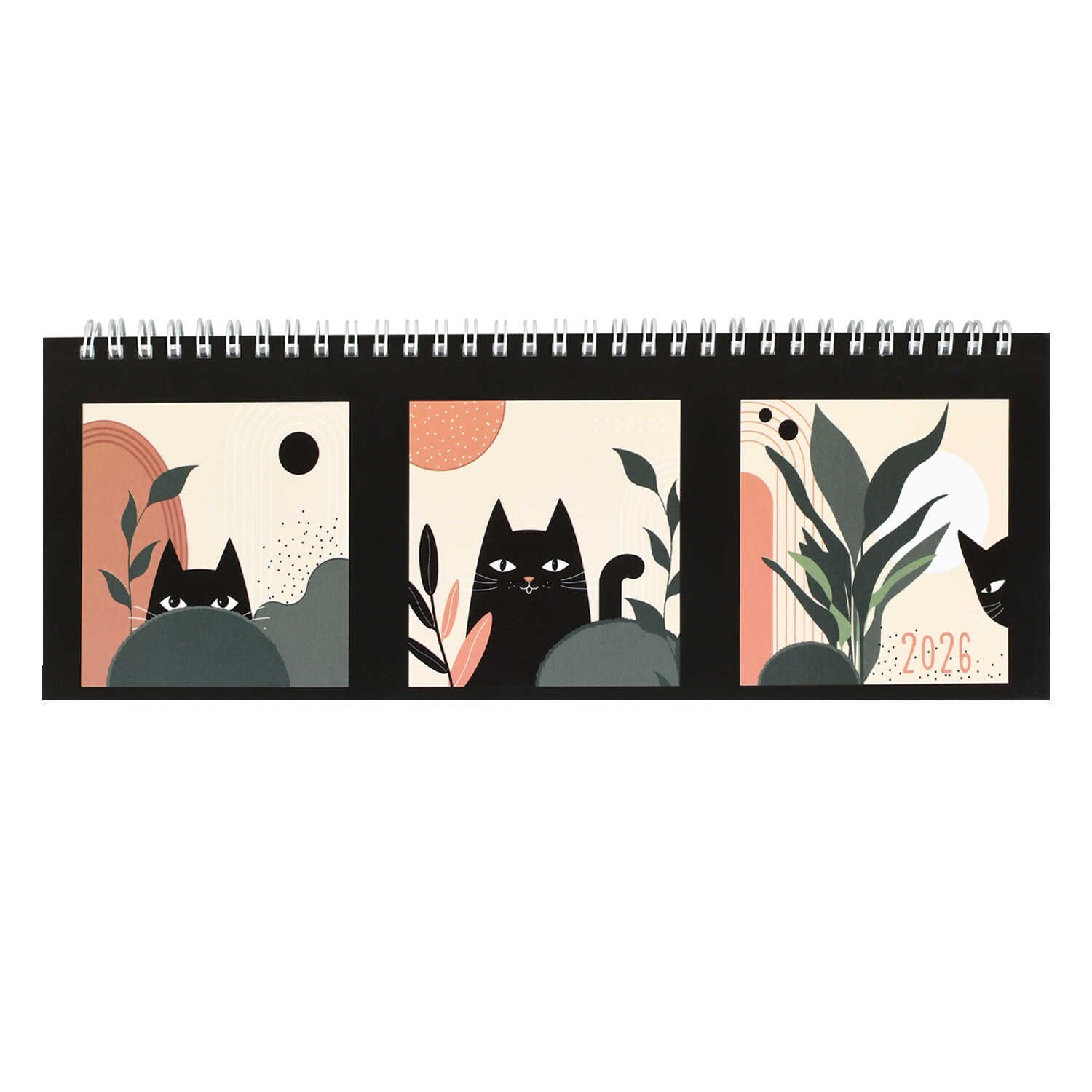 Планинг датированный 2026 арт. 71585 КОТЫ И ЛИСТЬЯ / 290х100 мм, 64 л., гребень по длинной стороне, полноцветная печать, глянцевая ламинация. Блок - белый офсет, 65 г/м², печать в одну краску,