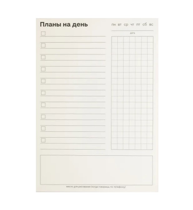 Планер на день недатированный для офиса и работы в формате А5 - компактный и качественный ежедневник, включающий 60 листов, достаточных на три месяца использования и даже больше. Планирование дел и ведение заметок по работе и учебе станет простым и удобным благодаря 3 секциям для записей: чек-бокс для фиксации задач, секция для заметок в клетку и пустое поле для записей или зарисовок. Ежедневник в клетку позволит вам еще более эффективно планировать свои дела. Наш недатированный ежедневник идеально подходит для тех, кто ценит гибкость и свободу планирования. Он представляет собой отличное решение для тех, кто хочет самостоятельно определять даты использования планера и не хочет зависеть от готовых форматов.Минималистичный дизайн планера на день придется по вкусу тем, кто ценит простоту и функциональность. Благодаря компактному размеру планера он идеально подходит для работы в офисе или находясь в движении. Наш ежедневник недатированный поможет вам организовать свой рабочий или учебный день, а планирование дел станет более эффективным и продуктивным.