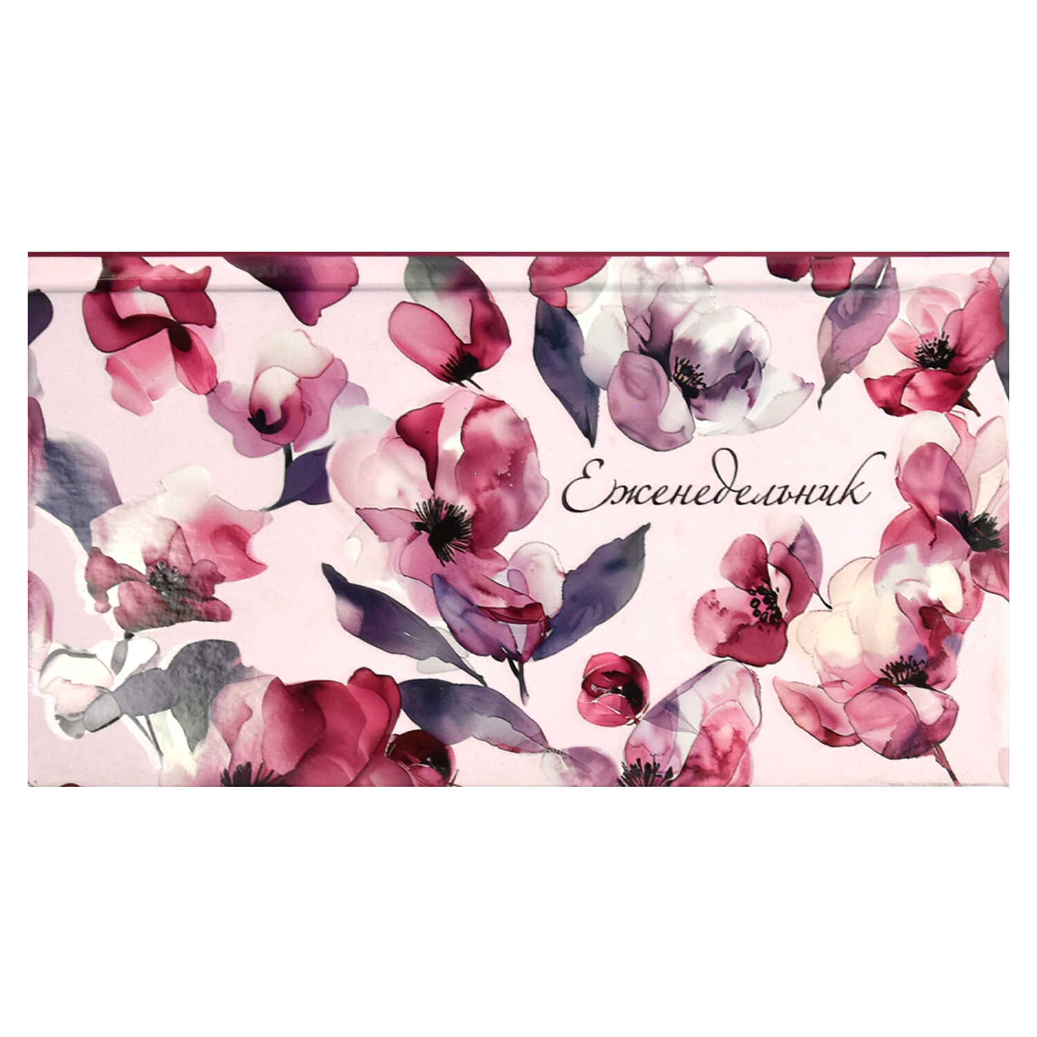Еженедельник недатированный арт. 68071 АКВАРЕЛЬНЫЕ ЦВЕТЫ / 165х90 мм, 64 л., твёрдый переплёт, полноцветная печать, УФ-лак выборочный , матовая ламинация. Блок - белый офсет, 65 г/м², печать в одну краску,
