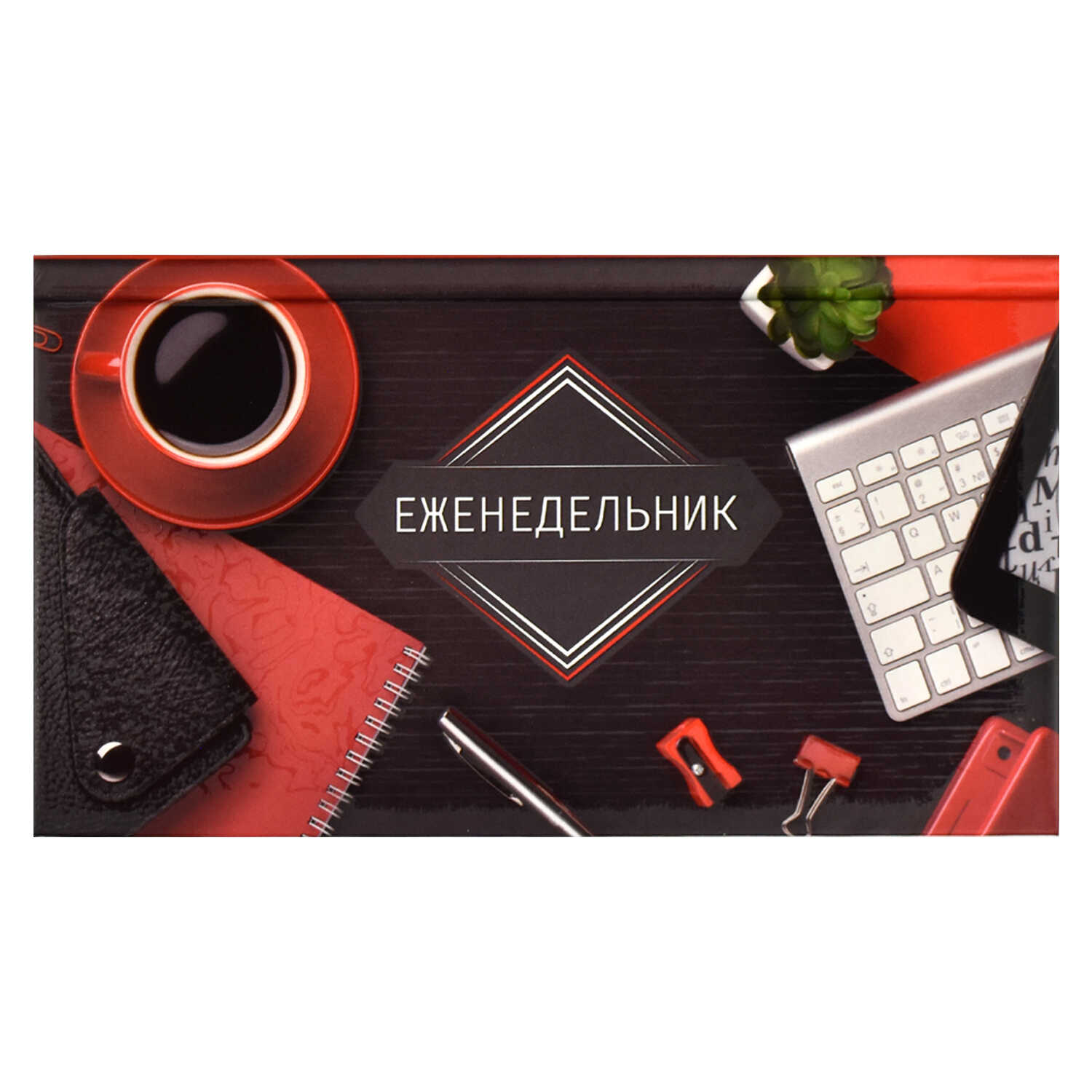 Еженедельник недатированный арт. 64347 КРАСНОЕ НА ЧЁРНОМ / 165х90 мм, 64 л., твёрдый переплёт, полноцветная печать, УФ-лак выборочный , матовая ламинация. Блок - белый офсет, 65 г/м², печать в одну краску,
