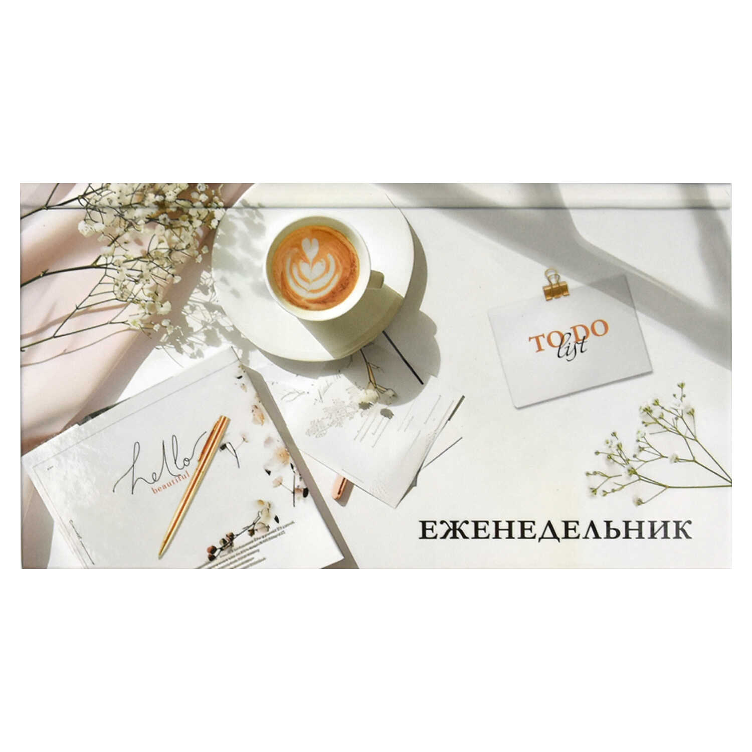 Еженедельник недатированный арт. 68067 УТРЕННИЙ КОФЕ / 165х90 мм, 64 л., твёрдый переплёт, полноцветная печать, УФ-лак выборочный , матовая ламинация. Блок - белый офсет, 65 г/м², печать в одну краску,