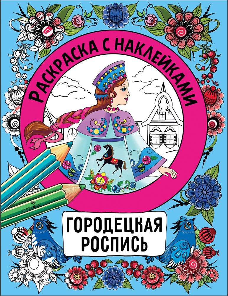 - Раскраска с наклейками. Росписи. Городецкая роспись