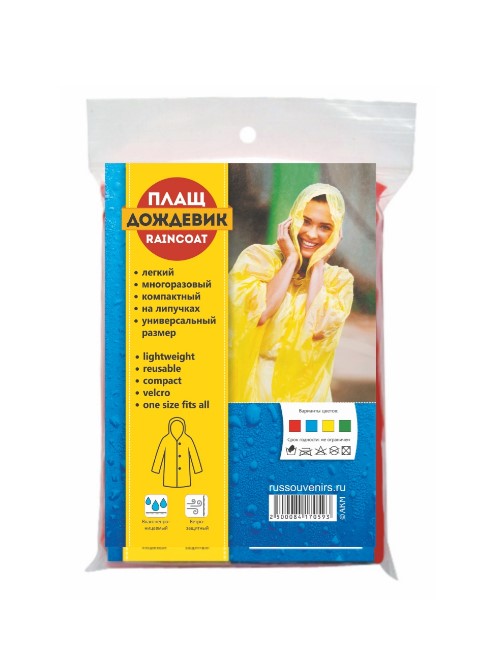 - RNP-Y Дождевик-пончо плотный с липучкой, цвет желтый