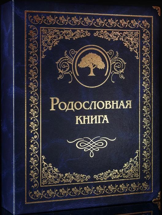 Родословная книга «Сапфировая» выполнена из финского картона и вручную обтянута дизайнерской бумагой. Книга выполнена в строгом классическом стиле.