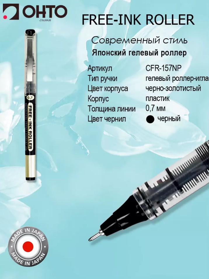 - Ручка роллер чернила Черные арт. CFR-157NP Black/B; OHTO FREE-INK ROLLER 0,7 мм блистер