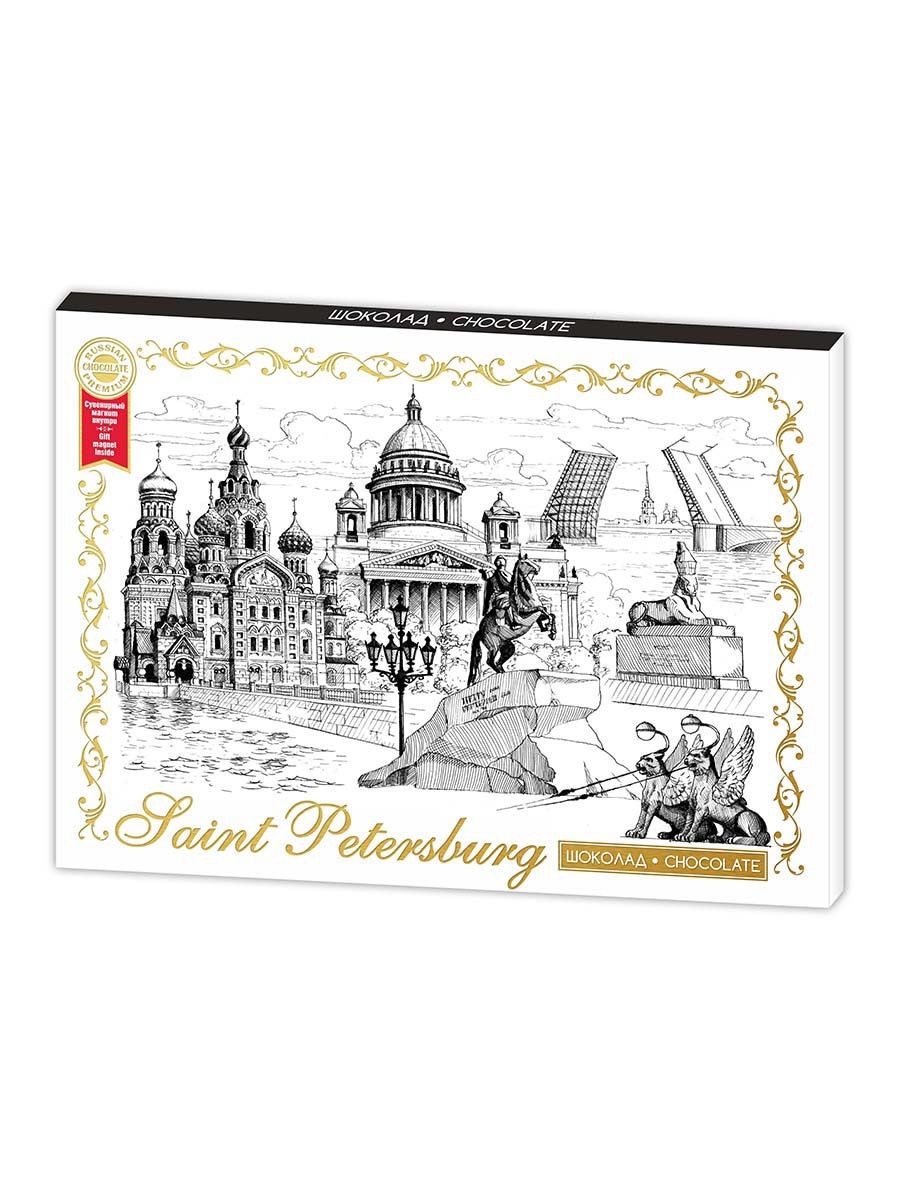 Сувенирный набор "Санкт Петербург. Коллаж графика": натуральный порционный шоколад. В упаковке 20 мини-шоколадок по 5 г. и магнит. Приготовлен из высоко качественных ингредиентов, без кондитерских жиров и стабилизаторов.