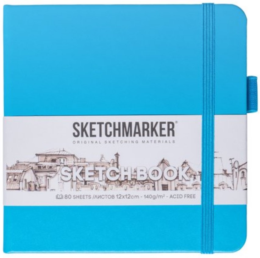 - Скетчбук 140 г/м² 12*12см 80 л. Синий Карибский Sketchmarker твердая облож.