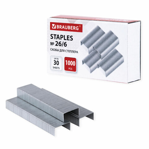 Скобы BRAUBERG № 26/6 (для степлеров 24/6), 1000 штук, экономичные, до 30 листов, 225973/40