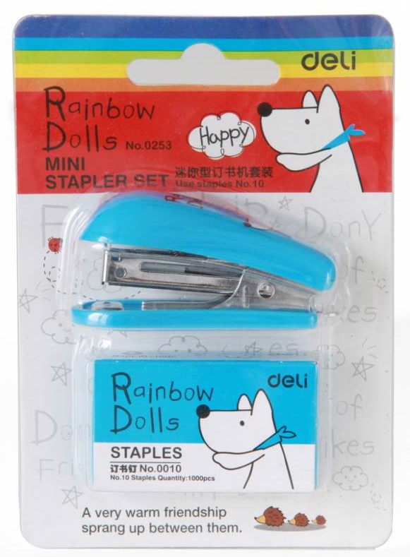 Степлер Deli Mini N10 (12листов) ассорти 40скоб блистер,глубина прошивки: 25мм.Материал пластик, наличие антистеплера.