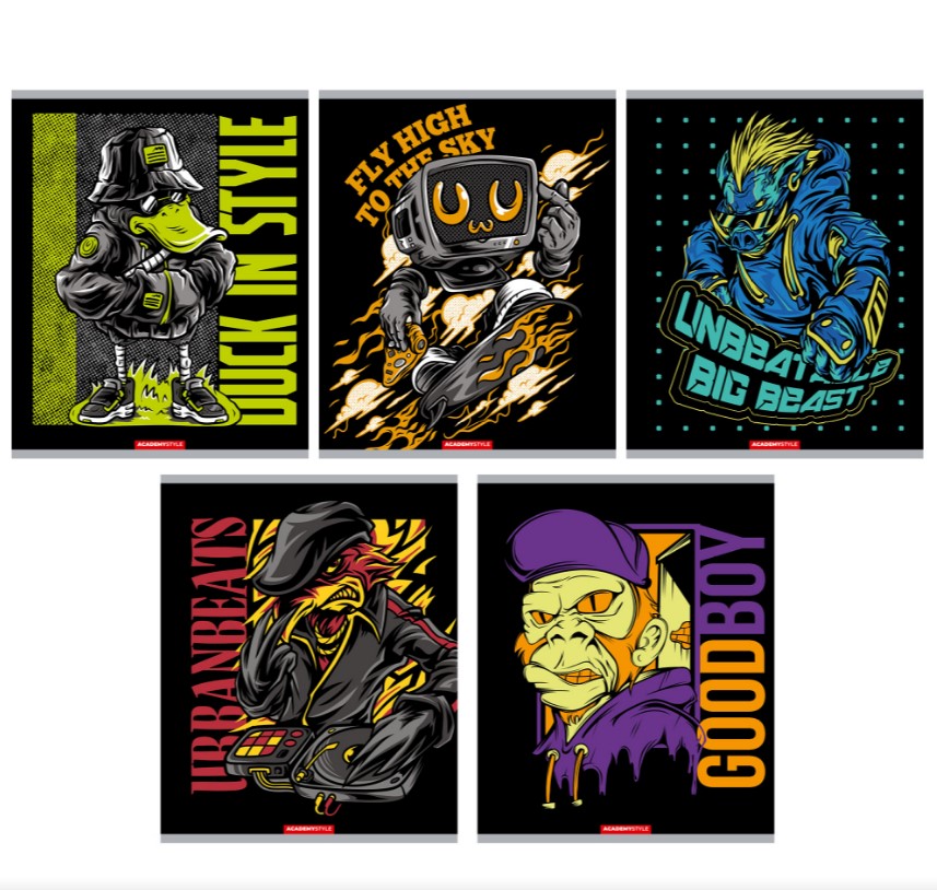 - Тетрадь А5 48 л. арт. 13065/5; Плохиши софт-тач лак Academy Style скрепка клетка