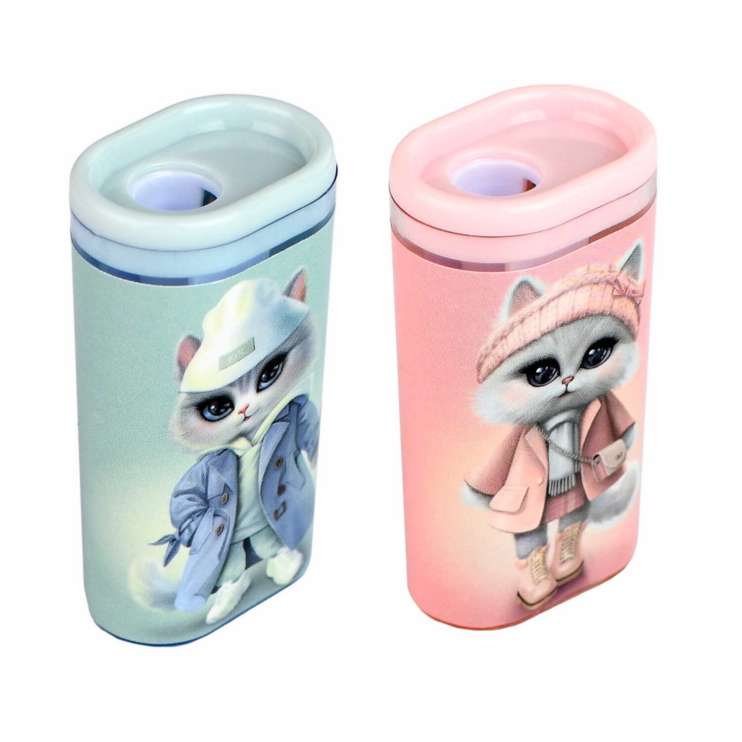 Точилка , арт.69644/ 24 ГОРОДСКИЕ КОШЕЧКИ (ассорти, полистирол, голубой, розовый, 1 отверстие (-я), 2,8х1,9х4,9 см, контейнер для стружки: есть).
