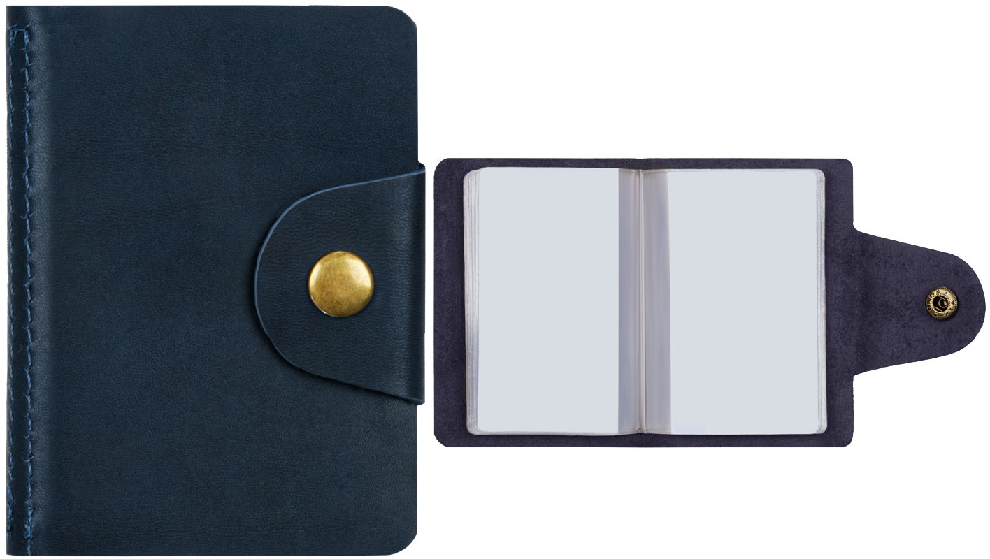 - Визитница 18 карманов 10*7см. Темно-синяя арт. 312566; OfficeSpace с кнопкой натуральная кожа