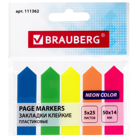 - Закладки стикеры 50*14мм 5цв.*25л. арт. 111362; BRAUBERG Неоновые Стрелки пластиковые