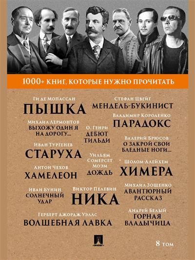 В сборнике представлены повести «Пышка» Ги де Мопассана, «Дождь» У. С. Моэма, рассказы «Химера» Шолом-Алейхема, «Хамелеон» А. П. Чехова, «Дебют Тильди» О. Генри, «Ника» В. О. Пелевина, «Волшебная лавка» Г. Дж. Уэлсса, «Солнечный удар» И. А. Бунина, «Горная владычица» А. Белого, «Мендель-букинист» С. Цвейга,