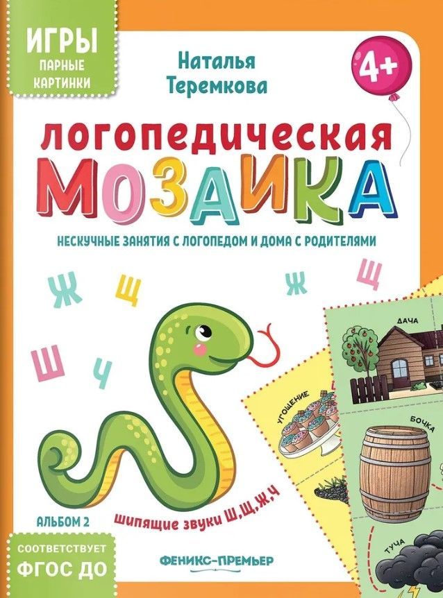 Игры с логопедом состоят из четырёх альбомов для настольной работы с детьми. В альбомах представлен разрезной материал в виде карточек, которые легко складываются в мозаику.