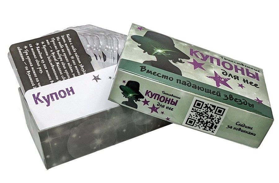 Хочешь сделать оригинальный подарок любимой девушке? Этот набор из 30 купонов — прекрасный и нестандартный способ продемонстрировать ей свое внимание. Купоны предлагают выполнить указанные в них действия, или же ты можешь загадать особенные, уникальные желания исключительно для своей избранницы (7 купонов специально оставлены незаполненными). Пусть эти приятные сюрпризы привнесут интригу и радость в ваши отношения!