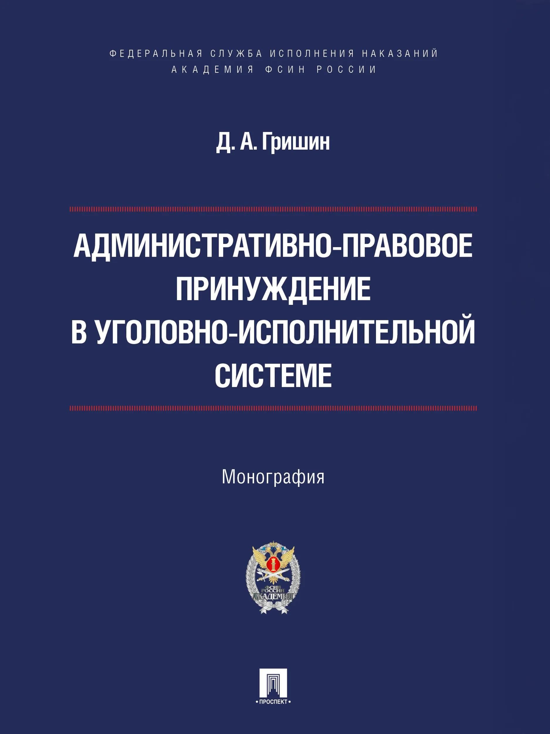В монографии исследована система государственного принуждения, реализуемого в органах и учреждениях ФСИН России. С учетом современных условий развития российского пенитенциарного ведомства определены место, роль и значение отраслевого административно-правового принуждения в деятельности уголовно-исполнительной системы.