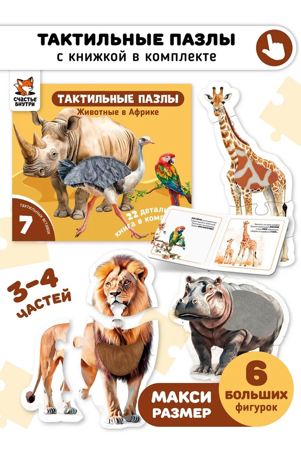 - Тактильные пазлы. Животные в Африке
