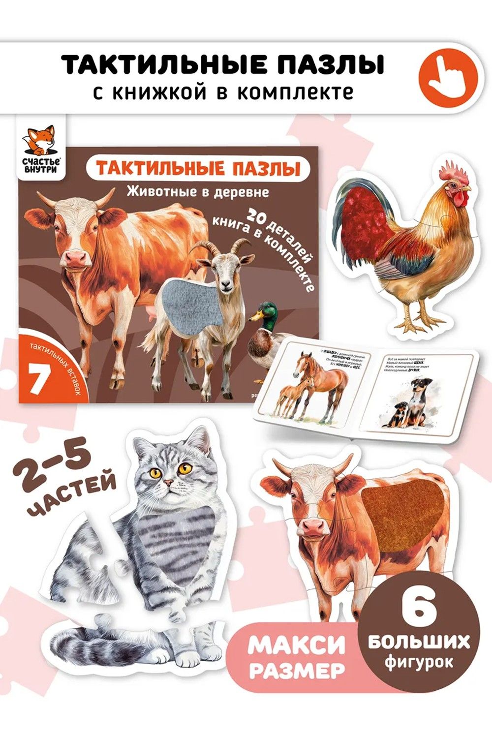 - Тактильные пазлы. Животные в деревне