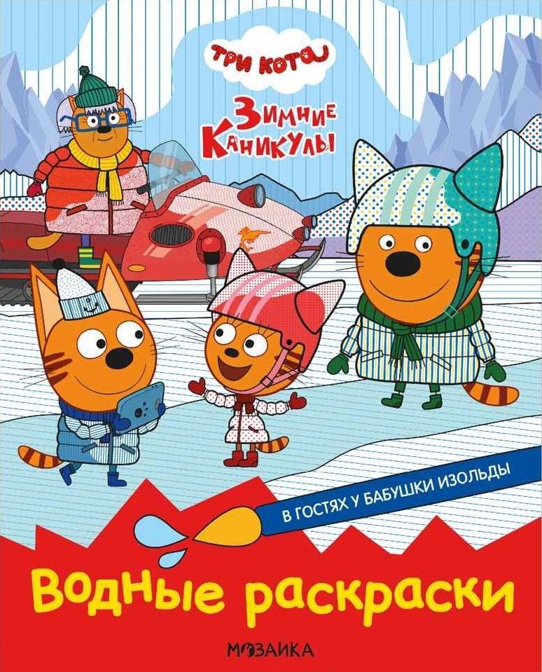 С книжкой «В гостях у Бабушки Изольды» из серии «Три кота. Водные раскраски» ребенок весело проведет время вместе с любимыми героями полнометражного мультфильма «Три кота. Зимние каникулы». А еще сможет стать настоящим котоволшебником, раскрасив странички при помощи смоченной в воде кисточки. Каждая иллюстрация очень яркая и находится на отдельном листе. Но не забывайте просушивать страницу, прежде чем ее перевернуть и приступить к следующей картинке. Водные раскраски отлично способствуют развитию творческого мышления и мелкой моторики.